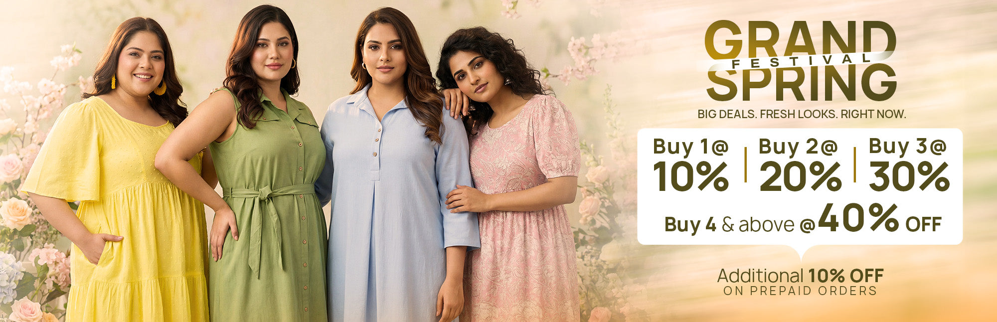 We're committed to every woman feeling confident and beautiful. Our size-inclusive range ensures no one is left out, with cotton dresses including maxi, midi, mini designed to flatter all body types. Discover comfort and style in our cotton dress collection. From playful to elegant, we cater to every occasion. Explore colors and patterns with our Plus size dresses, bright floral printed from Jaipur in hand block by sanganeri printers add freshness, while smart solids offer elegance. Stay ahead with our trending dresses, from dazzling party wear dresses to chic midi and vibrant floral styles, ensuring you always step out in style. From casual everyday strap cotton dresses to statement-making ensembles like cowl dresses and velvet dresses for special occasions, our outfits are tailored to perfection. Our collection is designed to evoke confidence in every wear. From elegant maxi dresses to chic tiered dresses, we provide a wide range of options.