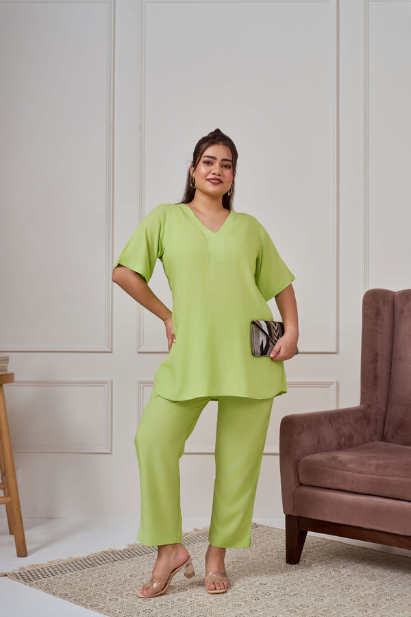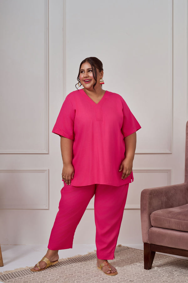 Blush Pink Linen Co-ord Set with Collared Top & Relaxed Bottom