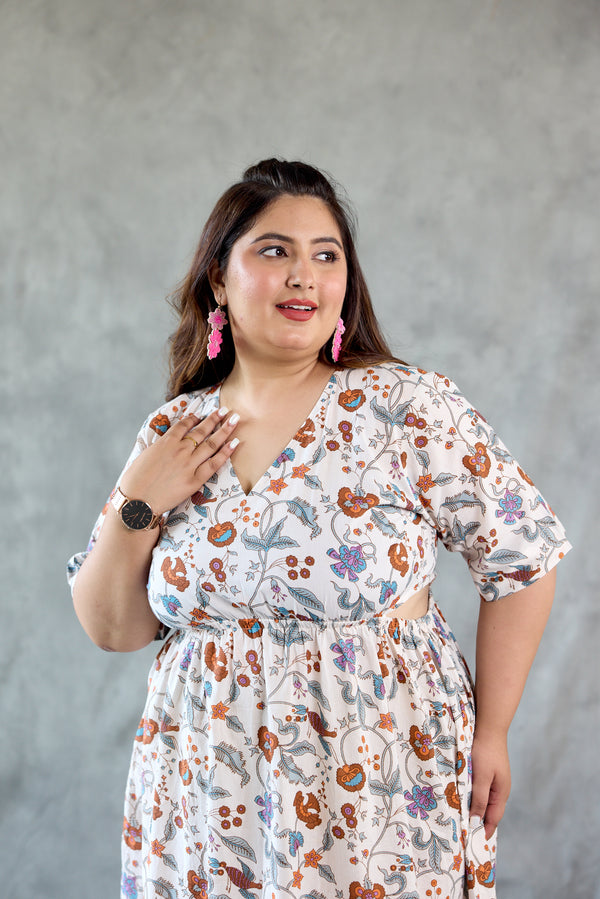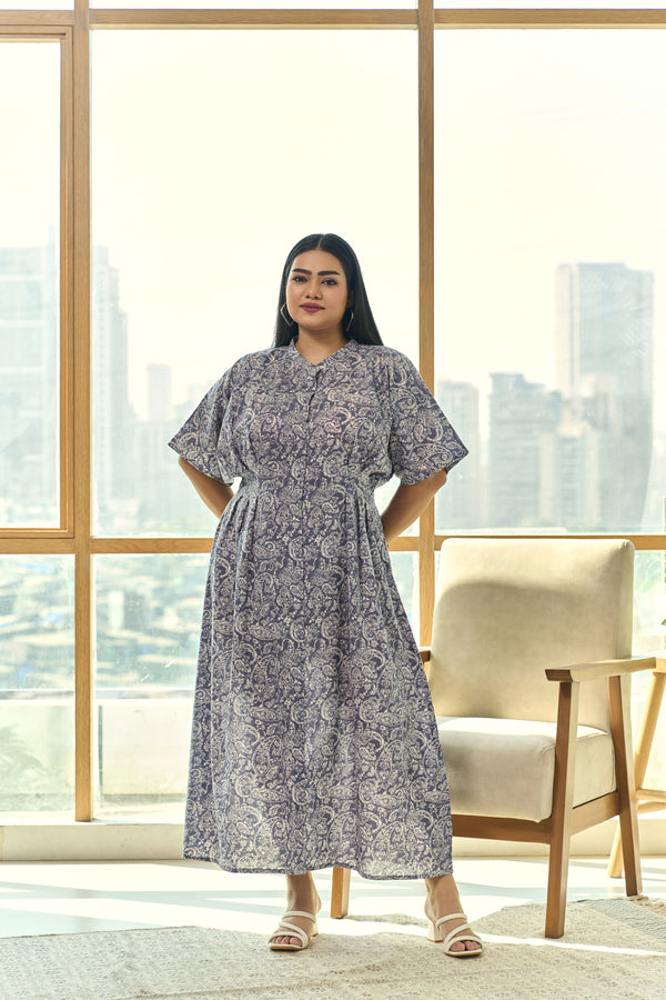 Summer Chic Pleated Screen Print Cotton Maxi Dress