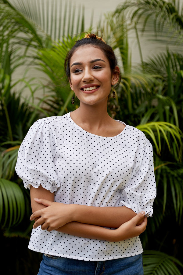 Timeless Polka Dot Green Cotton Maxi Dress with Puff Sleeves Sale price₹1,599 Regular price₹2,599