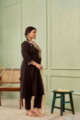 Black Cambric Suit Set with Gota Lace Accents (Set of 3)