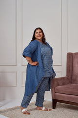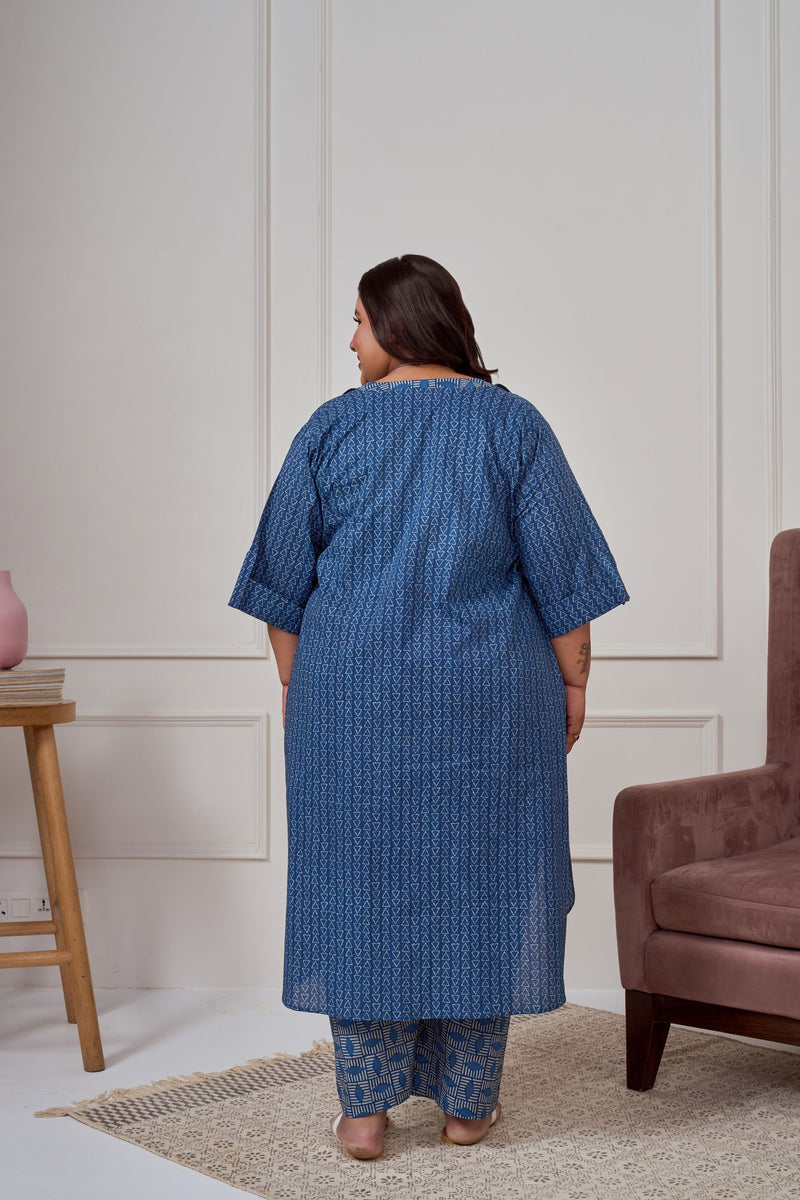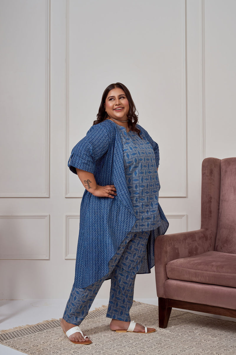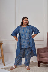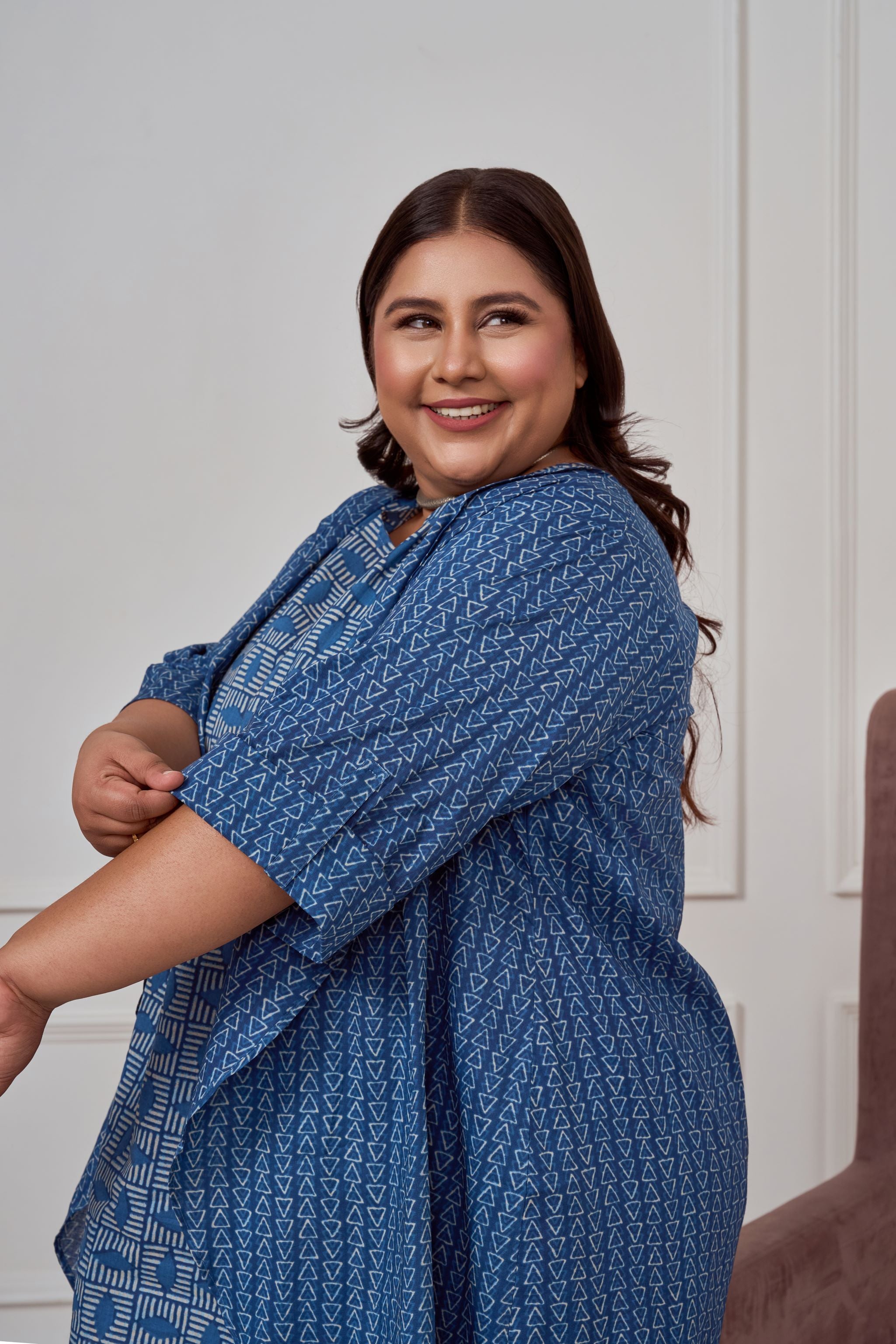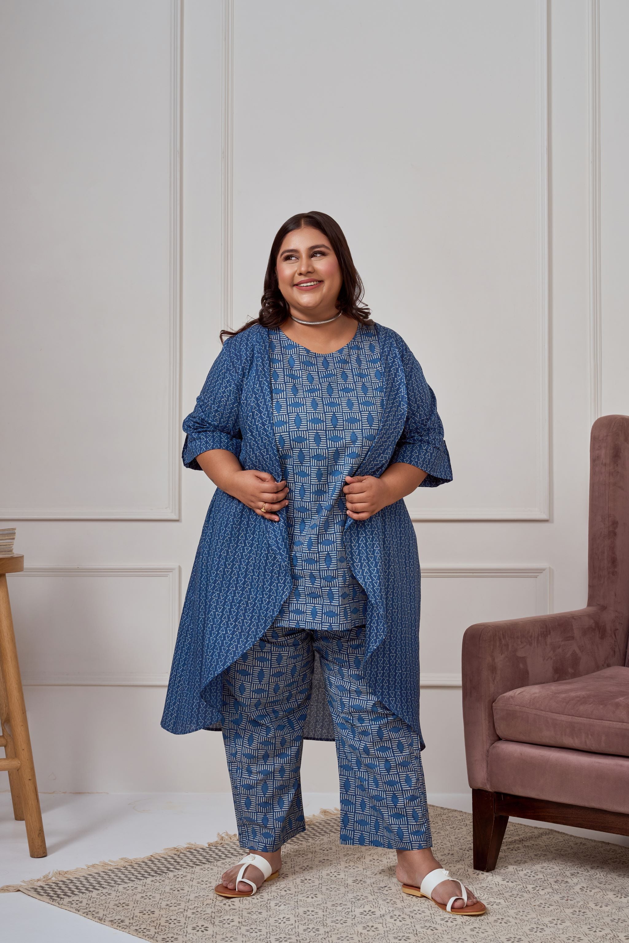 Step up your style game with this Blue Geometric Print Co-ord with Shrug! Featuring a comfy relaxed-fit top and matching pants with an elasticated waist, this outfit is all about easy going chic. With two convenient pockets for your essentials, it’s perfect for everything from workdays to brunch with friends. Effortlessly blend comfort and style in this versatile co-ord set that takes you from AM to PM!
