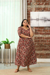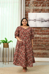 Embrace your bohemian spirit in this Bagru Print Cotton Maxi Dress. Flattering V-neck and elbow-length sleeves pair perfectly with the breezy flared cut. Complete with a handy front pocket for on-the-go essentials.