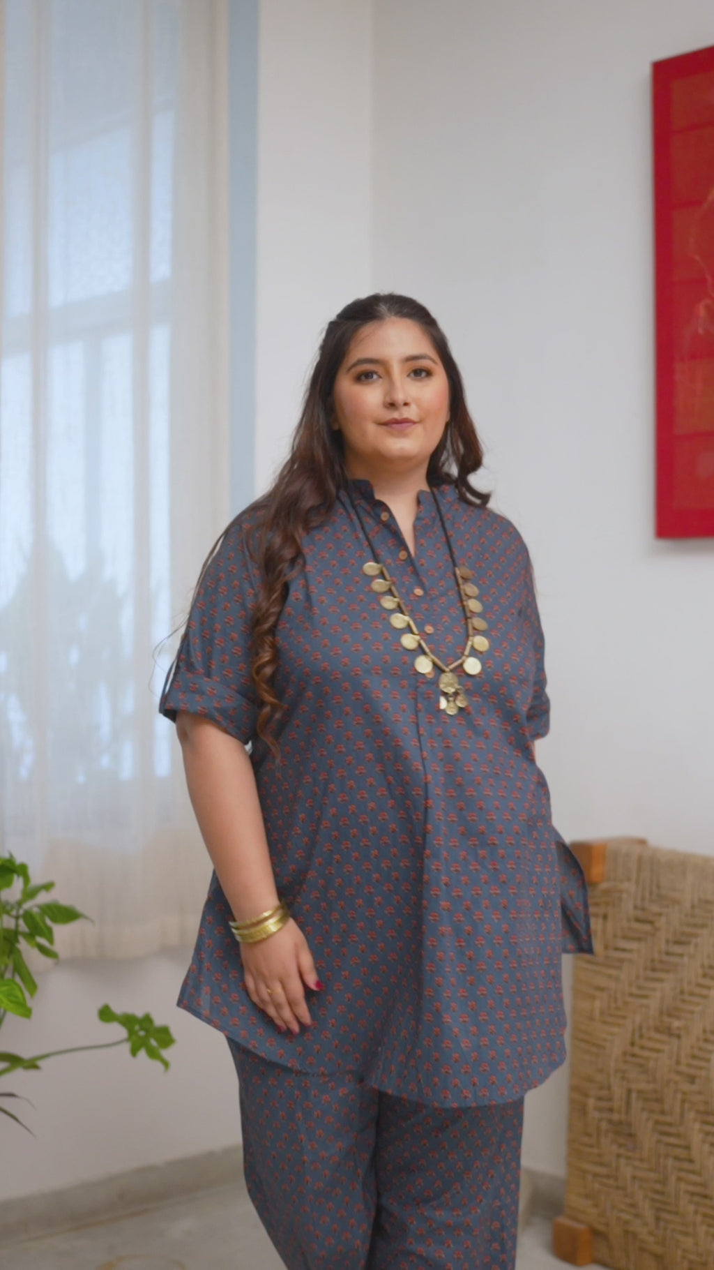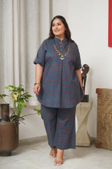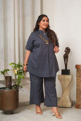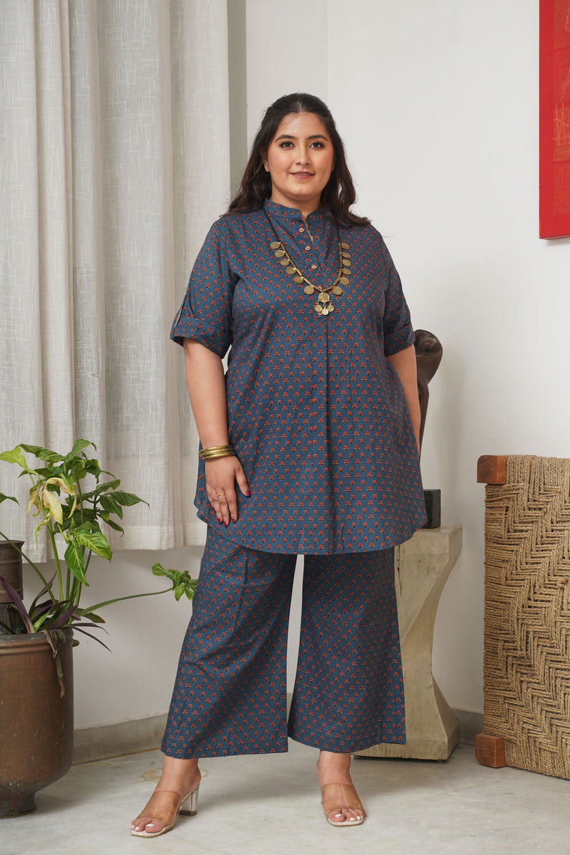 Booti Print Classic Blue Collared Co-Ord Set
