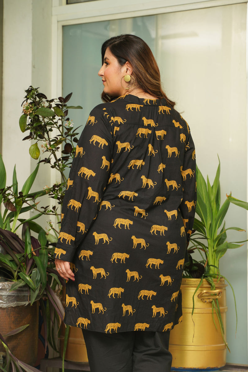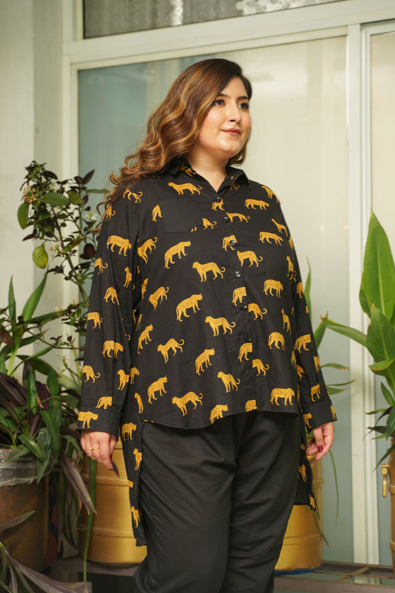 Cheetah Print Cotton Black Hi-Lo Shirt