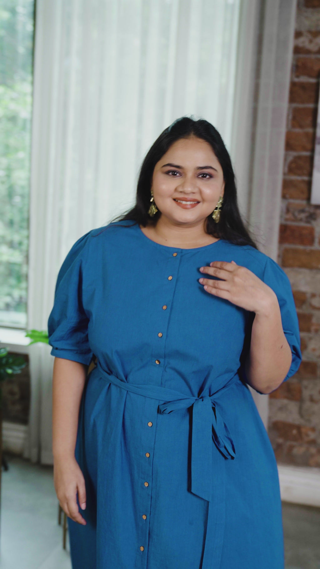 Cobalt Blue Button-Down Shirt Dress With Belt Sale price₹1,499 Regular price₹2,499