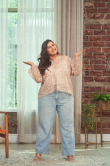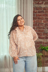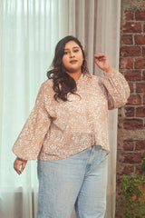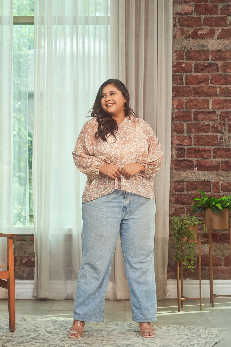 Coffee Printed Collared Georgette Shirt (ONLY SHIRT)