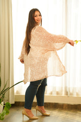 Introducing our Coffee Shaded BISHOP SLEEVES GEORGETTE SHRUG featuring breezy bishop sleeves. The rich coffee shade adds sophistication to any outfit, making it perfect for beach days, casual outings, or relaxed work wear. Whether you're traveling, exploring beach towns, or looking for stylish work wear cover-ups, this shrug is the ideal companion.