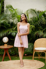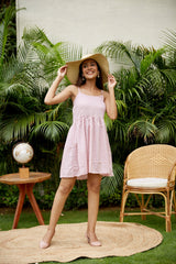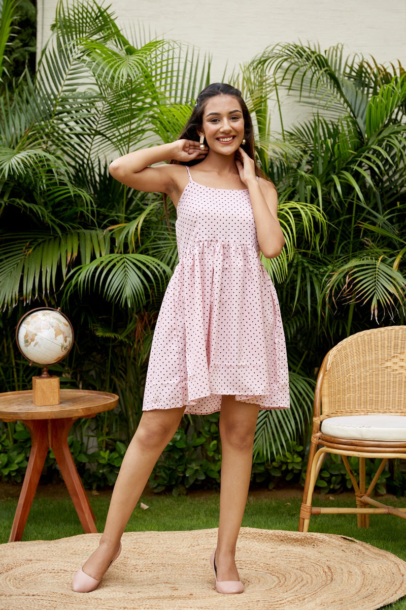 Cotton Baby Pink V Neck Polka Dot Set