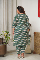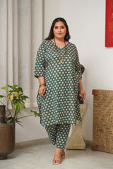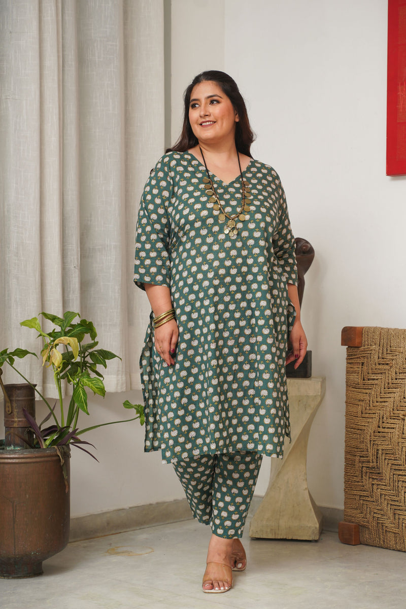 | Such comfy Kurta Co-Ord sets are always a yes!! It's a nice green booti knee length kurta set. |
