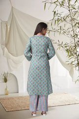 Cotton Green Floral Printed Hilo Kurta Pants Set - (Set of 2)