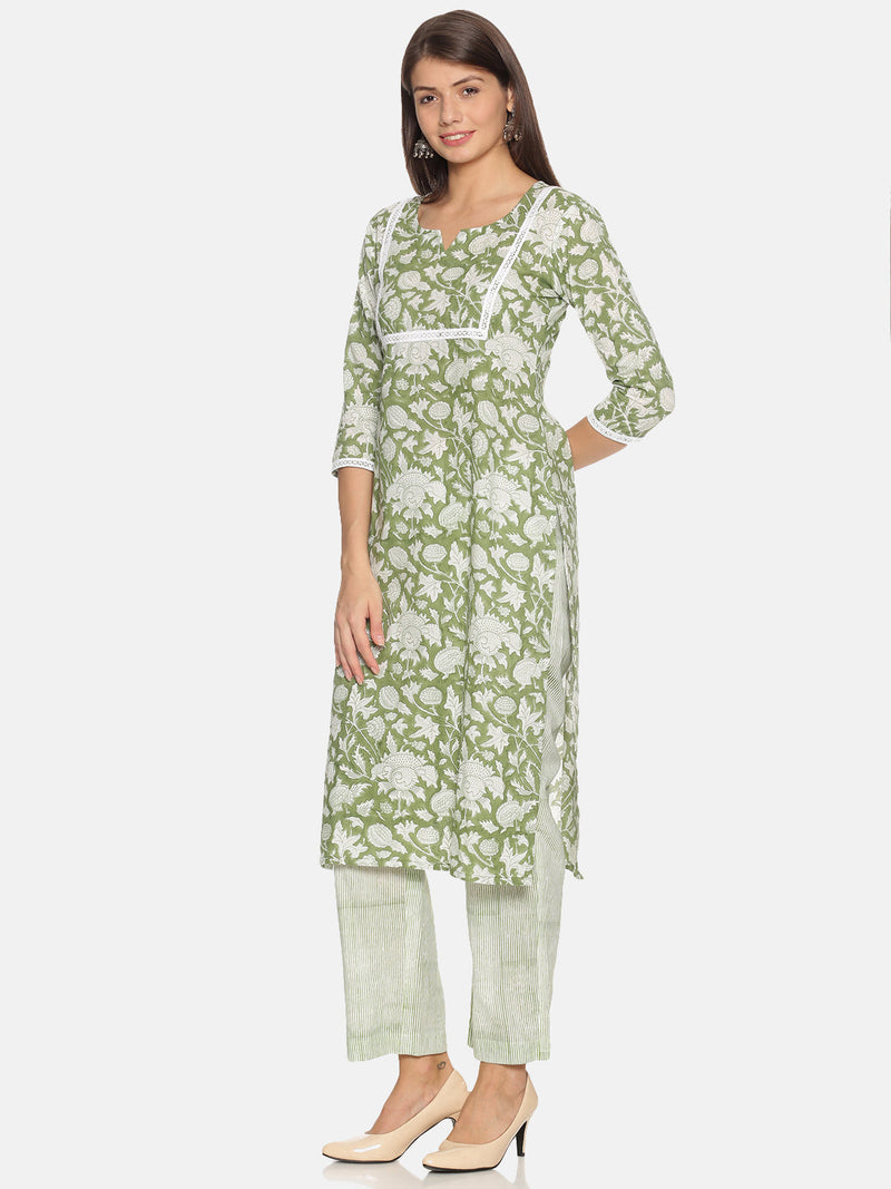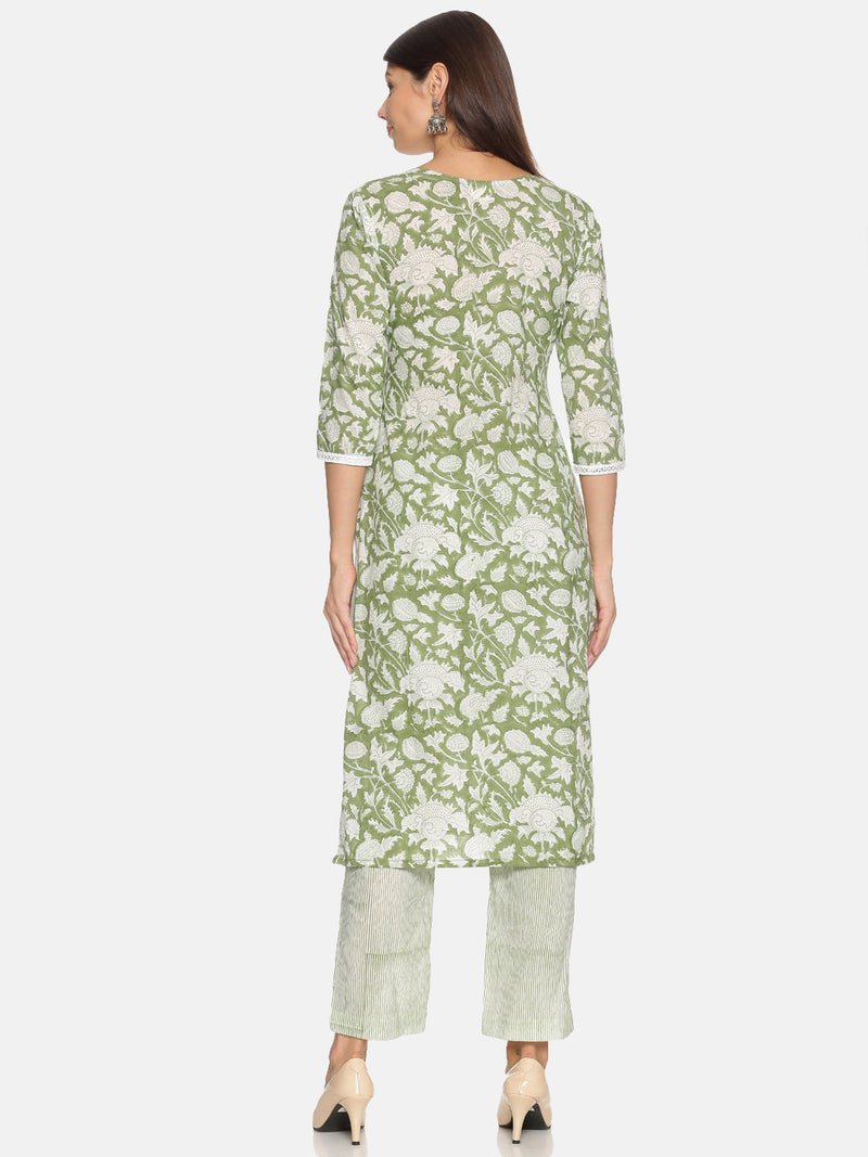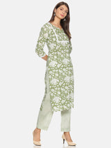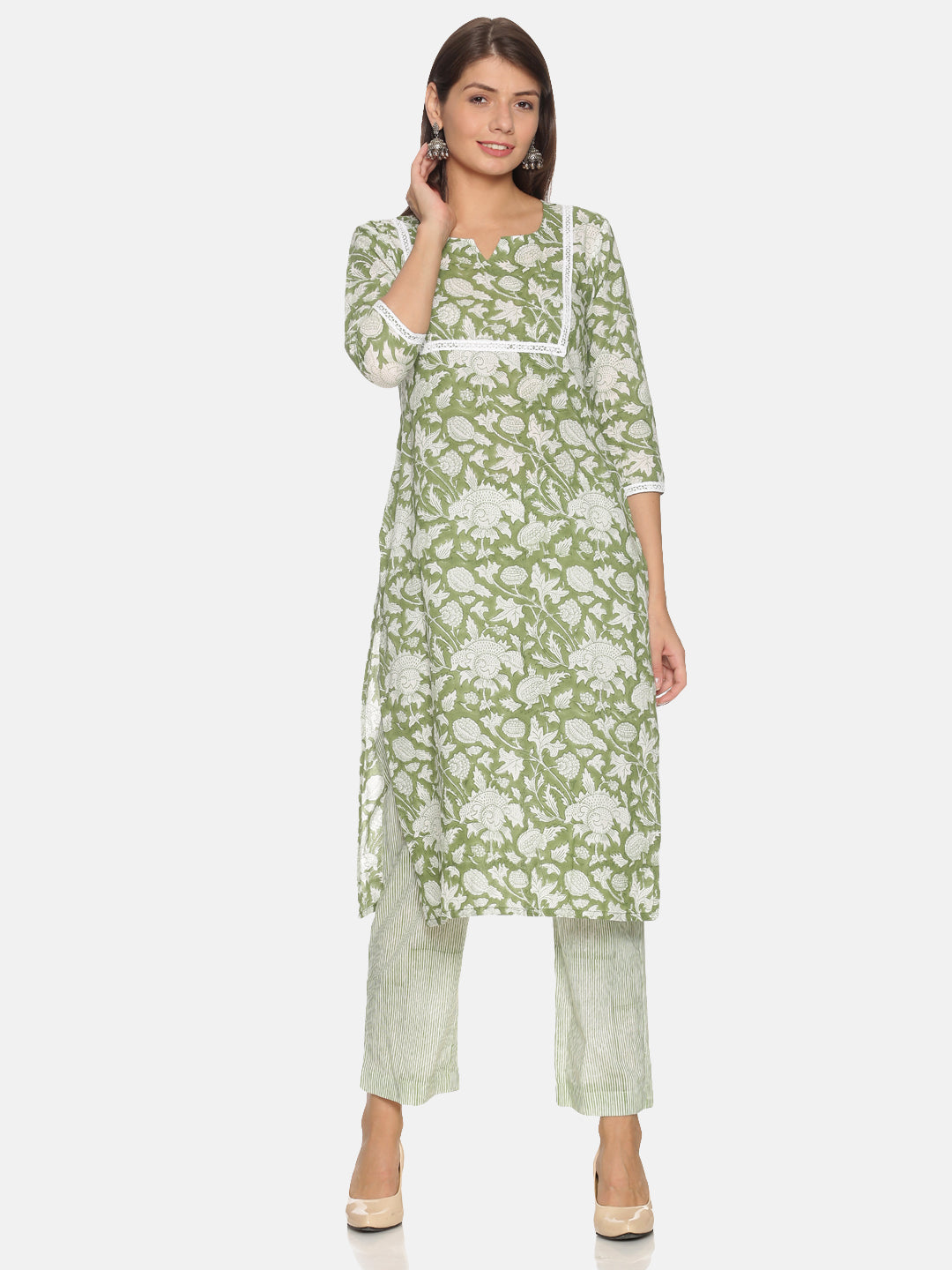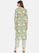 Cotton Green Floral Printed Kurta - (Only Kurta)