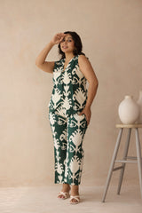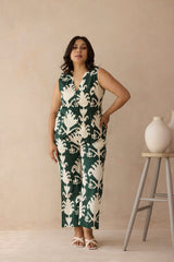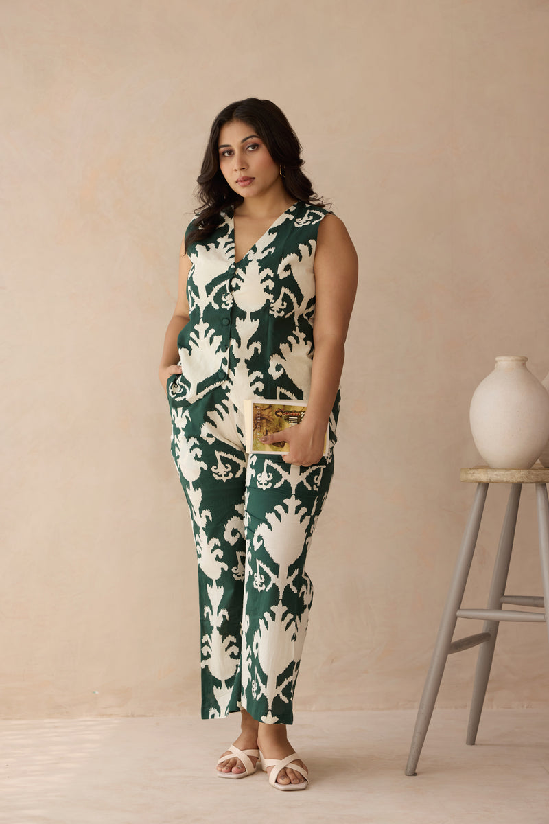Deep Forest Green Cotton Waist Coat Pant Co-ord Set