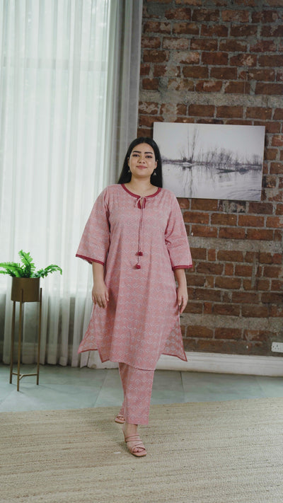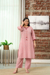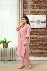 Dusty Rose Printed Kurta & Trousers Co-ord Set