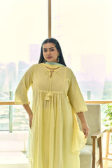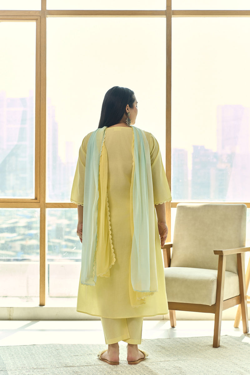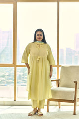 Radiate grace in this sorbet yellow kurta set Kurta set (set of 3), crafted from 100% cotton for