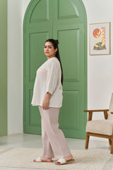 Elegant White Cotton Slub Peplum Top