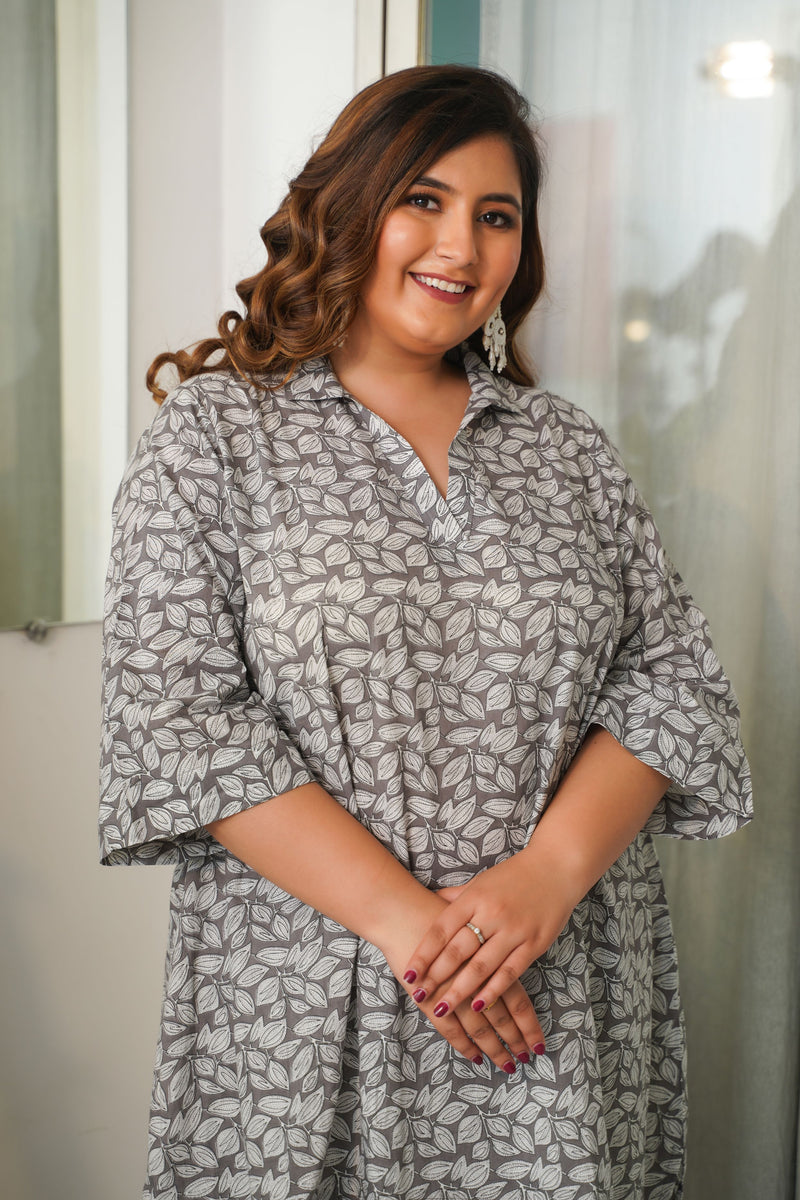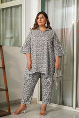 Grey Ikigai Printed Cotton Co-Ord Set