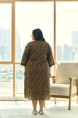 Mehendi Green Ajrakh Print Indo-Western Midi Dress