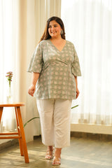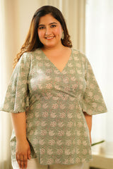 Mint Green Lotus Printed Top