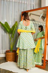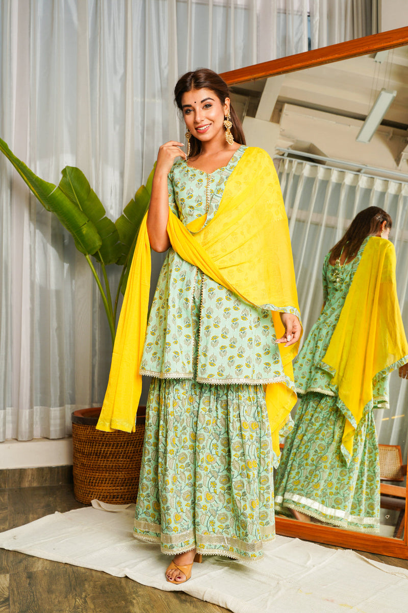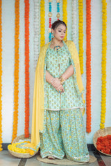 Mint Yellow Gotta Lace Sharara Set - (Set of 3)