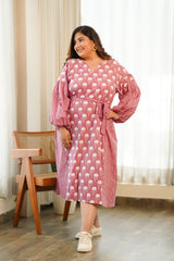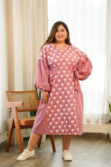 Onion Pink Cotton V- Neck Anti-Fit Dress
