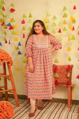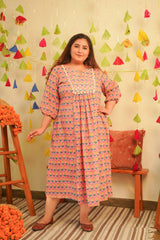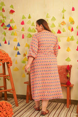 Peach Booti Printed Cotton Indo-Western Dress
