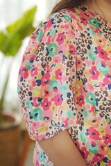 PEACH MODAL DIGITAL PRINT SATIN SHORT DRESS