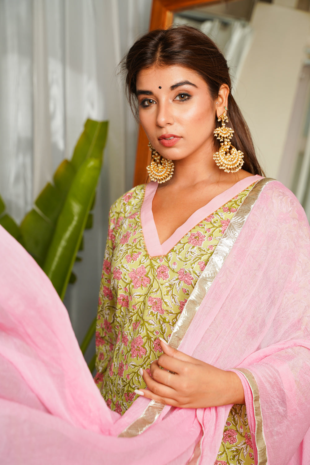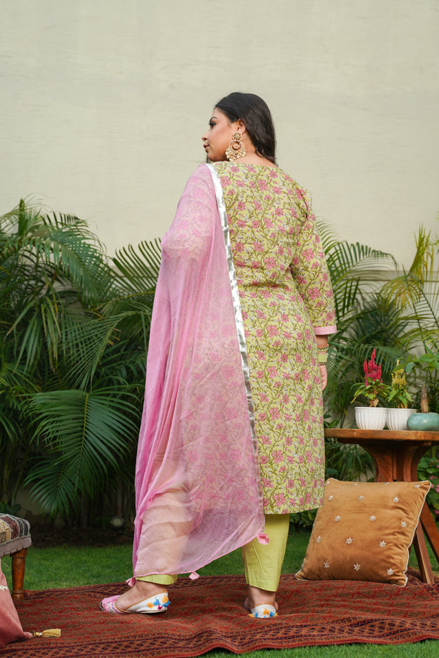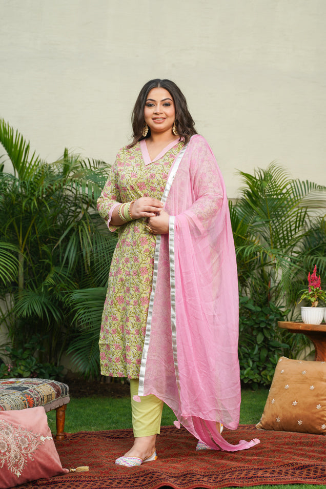 - Fabric : 100% Cotton with Chiffon Dupatta