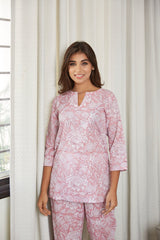 It's a cute floral pink Short kurta Pyajama set for your daily hacks or for a summer outing. It has a relaxed feel and can be worn for everyday wear.