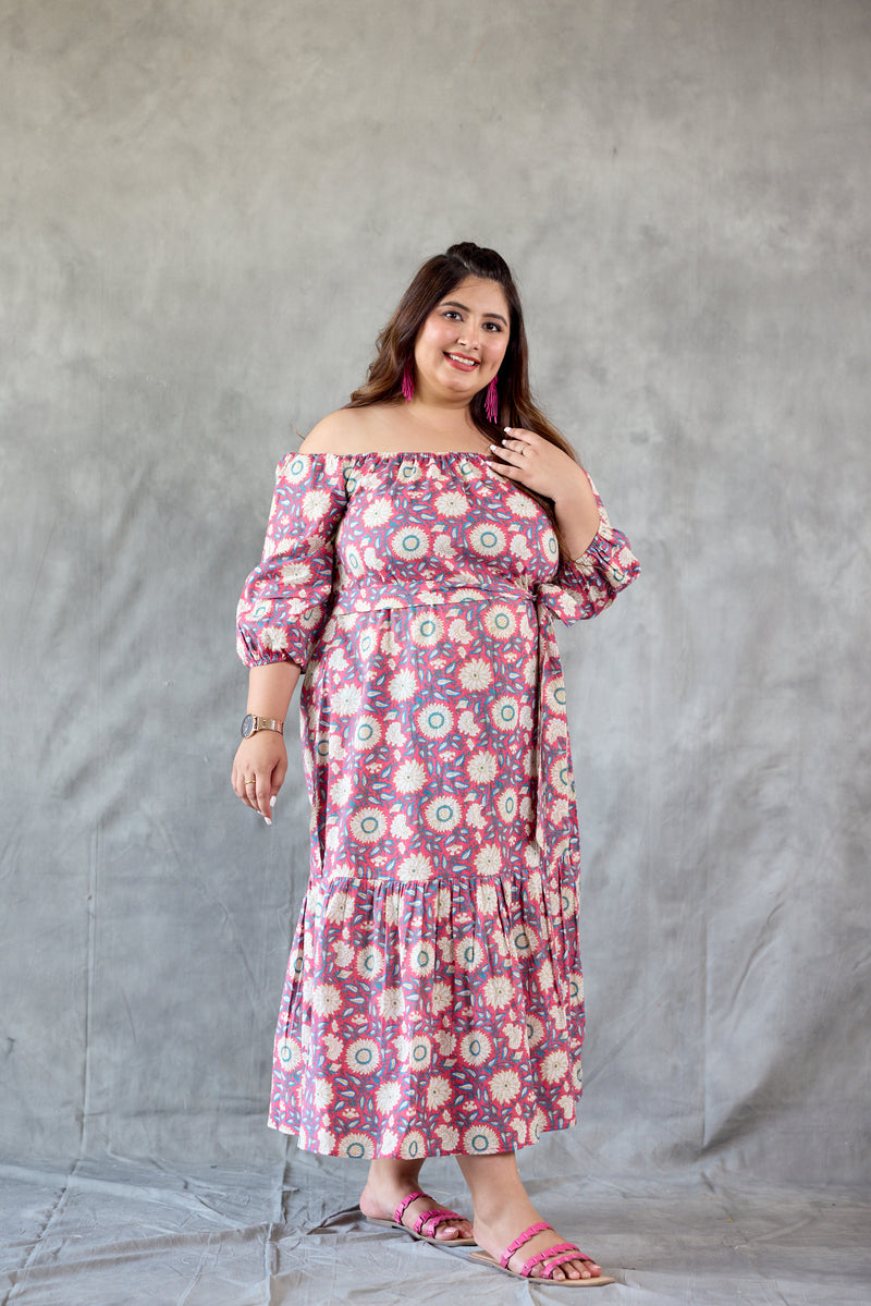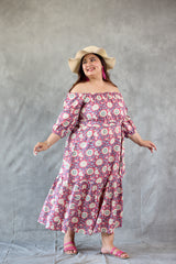 | Kickstart your beachside adventure in style with our 100% cotton Pink Floral Printed Off Shoulder Maxi Dress. This tiered dress features an elasticated neckline to wear it on and off the shoulder. The dress comes with a sash belt for a cinched waist look offering a flattering silhouette that effortlessly transitions from strolling along the shore to sipping cocktails at sunset. |