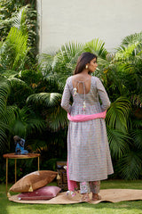 Pink Grey Floral Anarkali Set