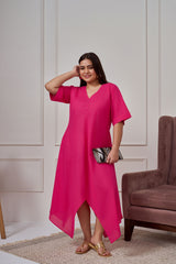 Add a touch of sparkle to your wardrobe with our Pink Lurex Dress featuring a chic asymmetrical handkerchief hem with slip. The shimmering cotton lurex fabric catches the light beautifully, while the flowing hem creates a flattering silhouette that moves with you. Perfect for evenings out, parties, or festive occasions, this dress blends elegance with a modern edge for a standout look.