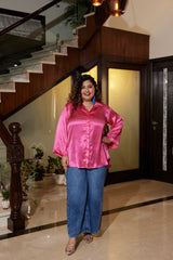 PINK SATIN OVERSIZED SHIRT (Only Shirt)