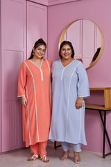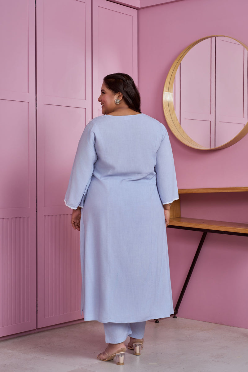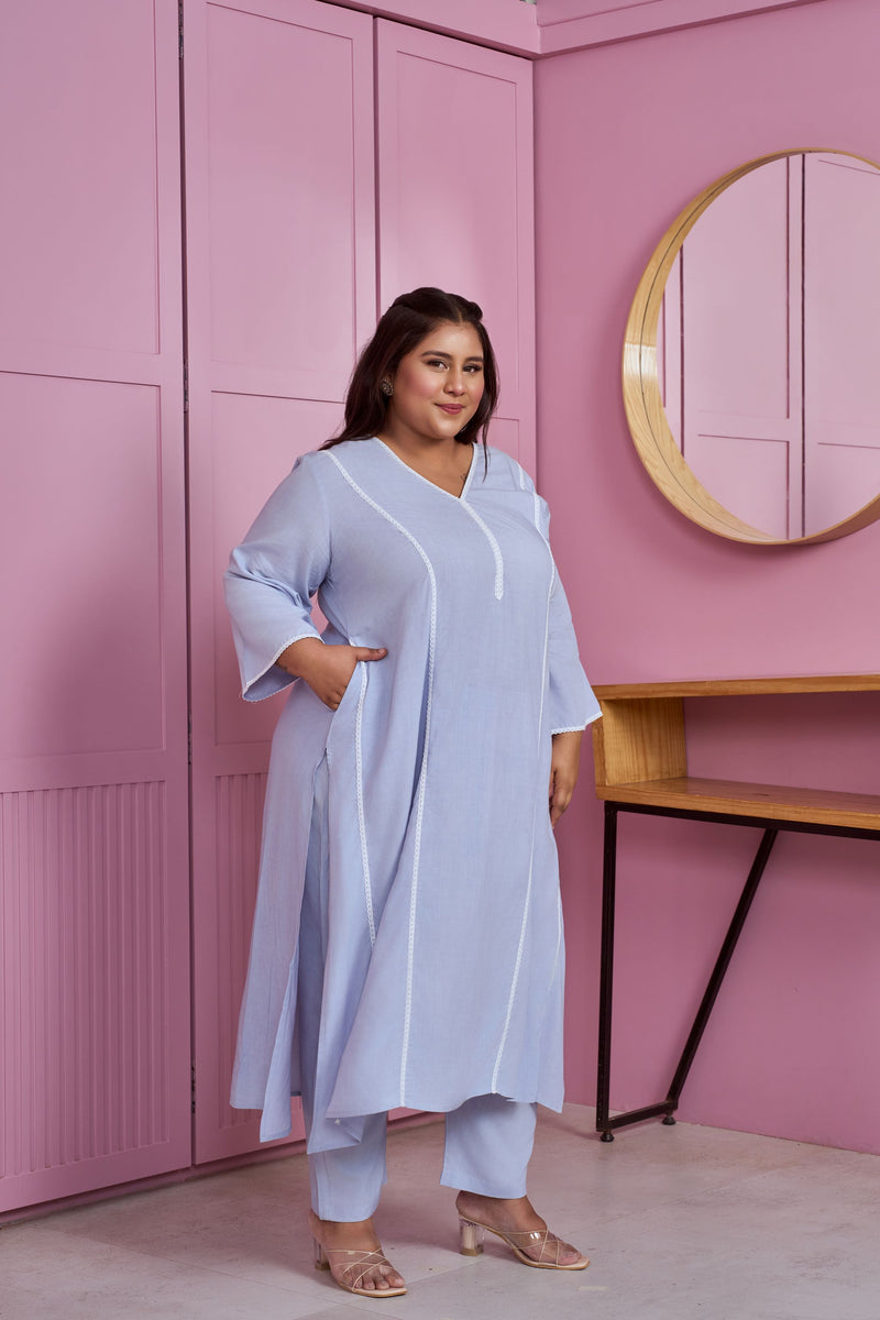 Powder Blue Modal Kurta Set with Lace Accents (Set of 2)