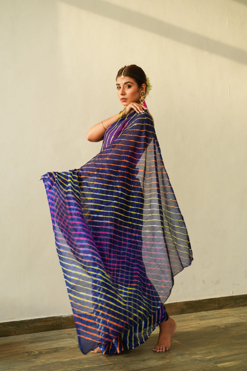 Prussian Blue Multi Leheriya Saree