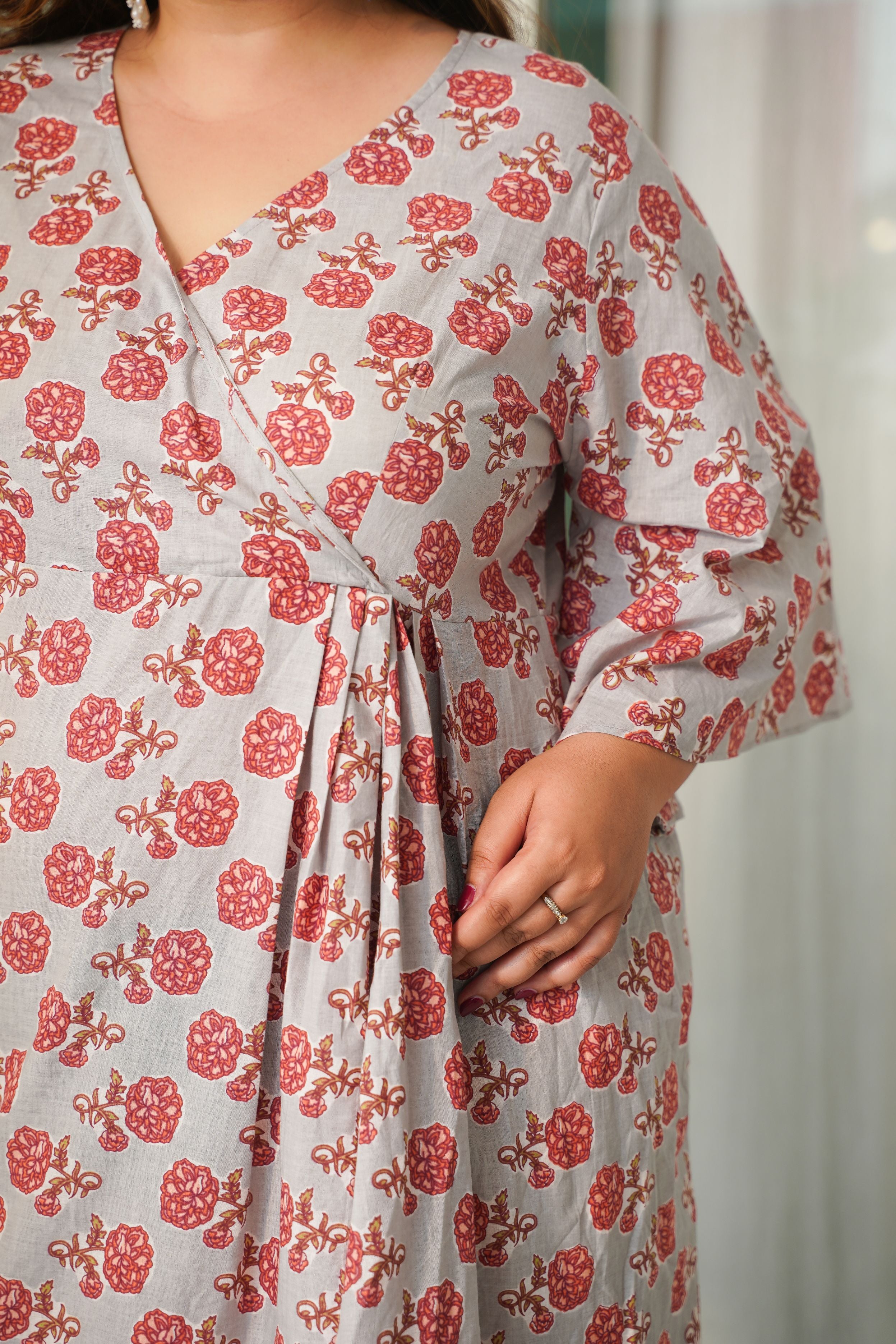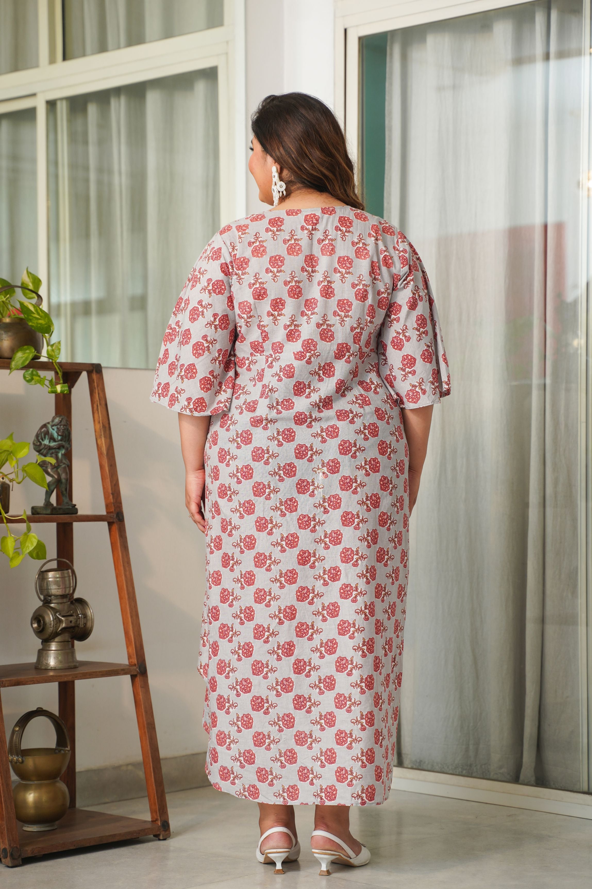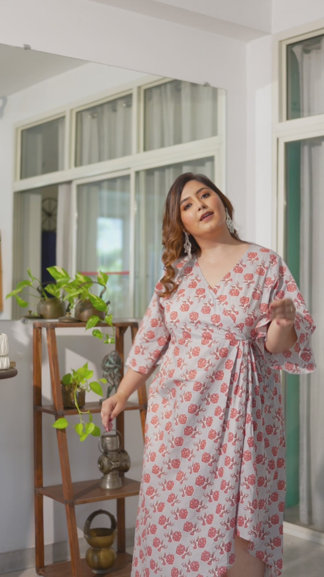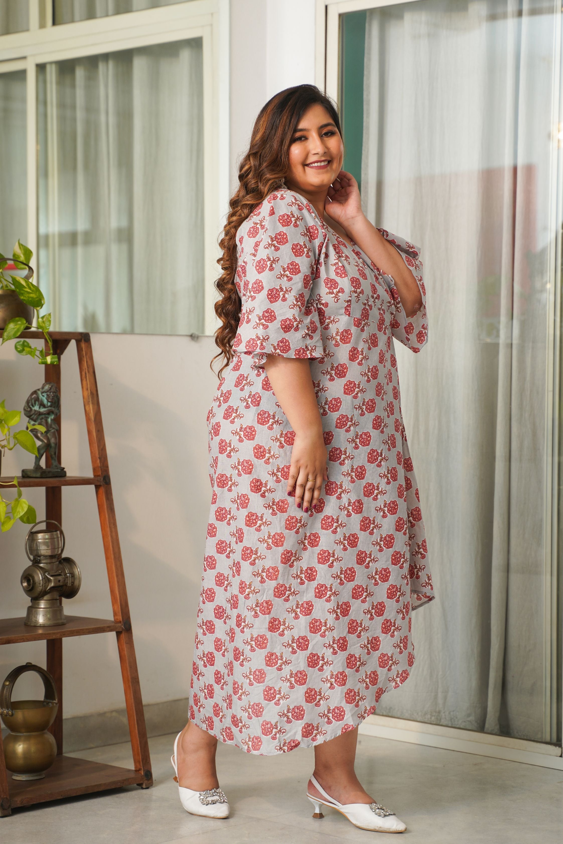 | This is a rose booti print dress with smart drape on waist. Wear it for a day outing and be comfy too. |