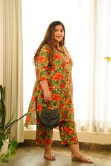 Step into effortless elegance with our Floral Print Button-Down Co-ord Set – a perfect fusion of professional polish and modern style. The top features a classic collared neckline with playful bell sleeves, complemented by a chic high-low hem and side slits for added flair. The front button-down design adds a sophisticated finish, making it suitable for both work and casual outings. Paired with flattering straight flared bottoms, this co-ord set offers a stylish and versatile silhouette that transitions seamlessly from day to evening. Styling Tip: Pair it with flat sandals for a laid-back chic look. Add statement earrings to complete the outfit, and you’re ready to take on the day in style! |