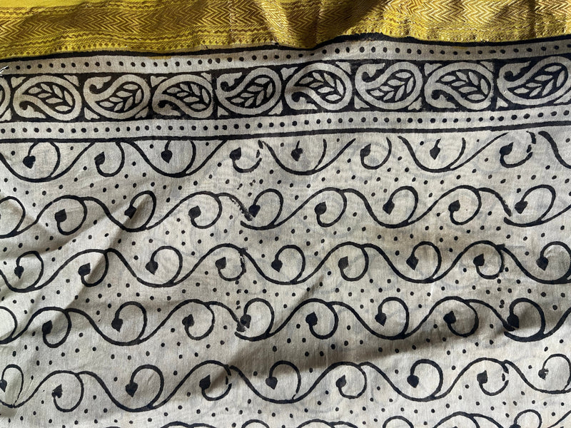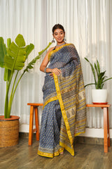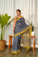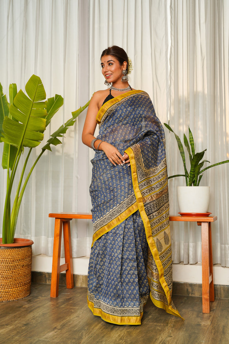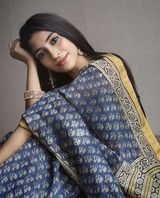Blue Mustard Bagru Saree