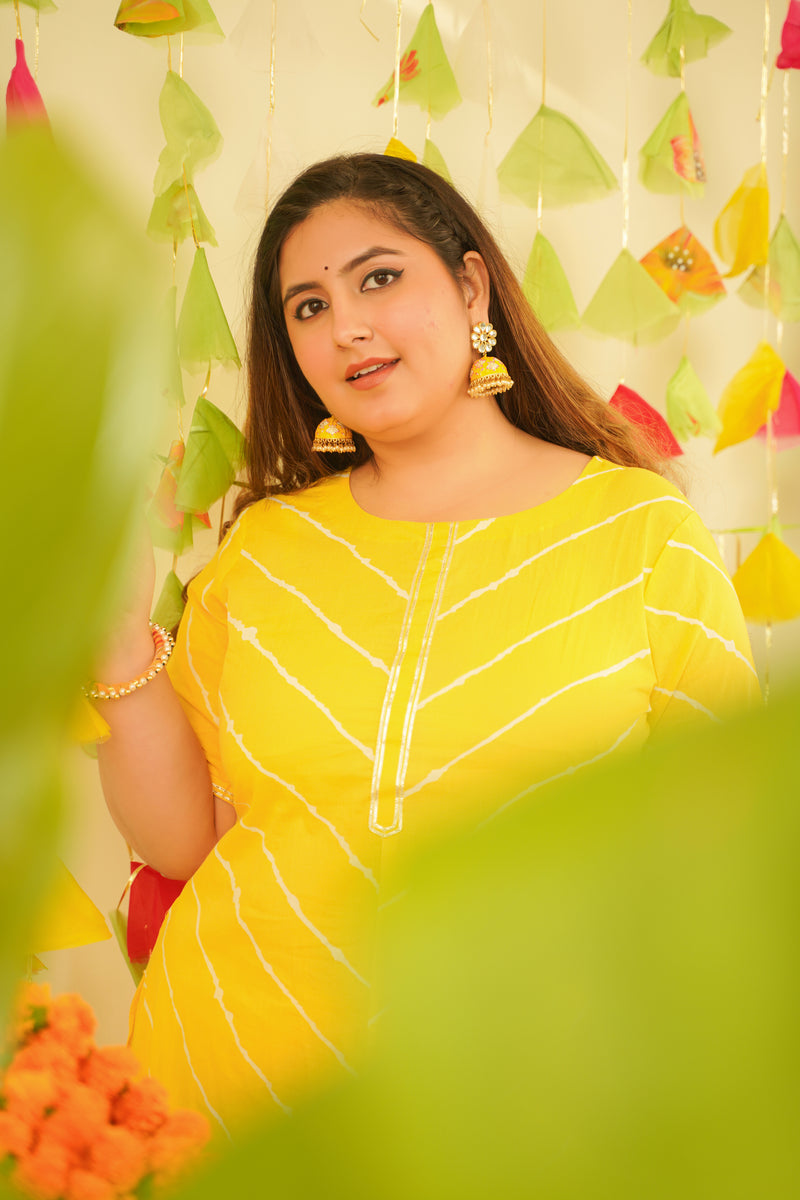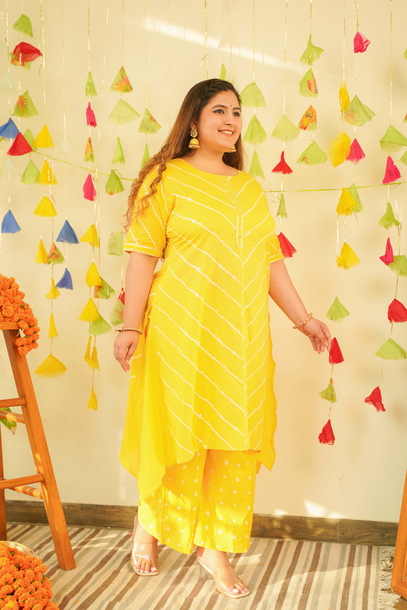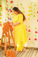 Yellow Leheriya Kurta Set - (Set of 2)